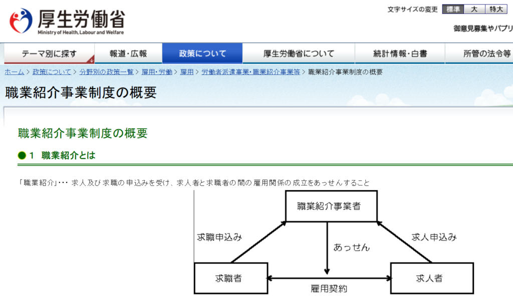有料職業紹介は職業安定法に基づき、厚生労働大臣の許可が必須です。